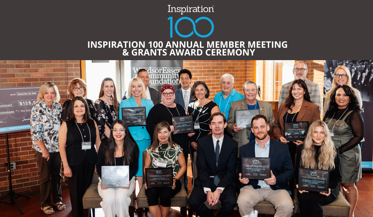 “Inspiration 100™ is a remarkable example of what can happen when like-minded individuals come together to create lasting change,” said Lisa Kolody, Executive Director of the WindsorEssex Community Foundation. “We are proud to steward this fund and help turn their collective vision into meaningful, ongoing investment in our community.”