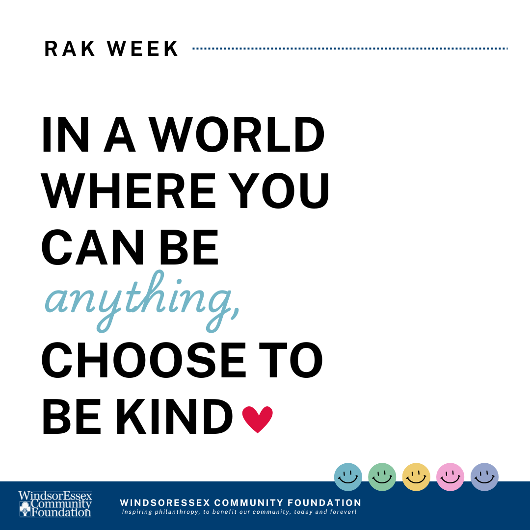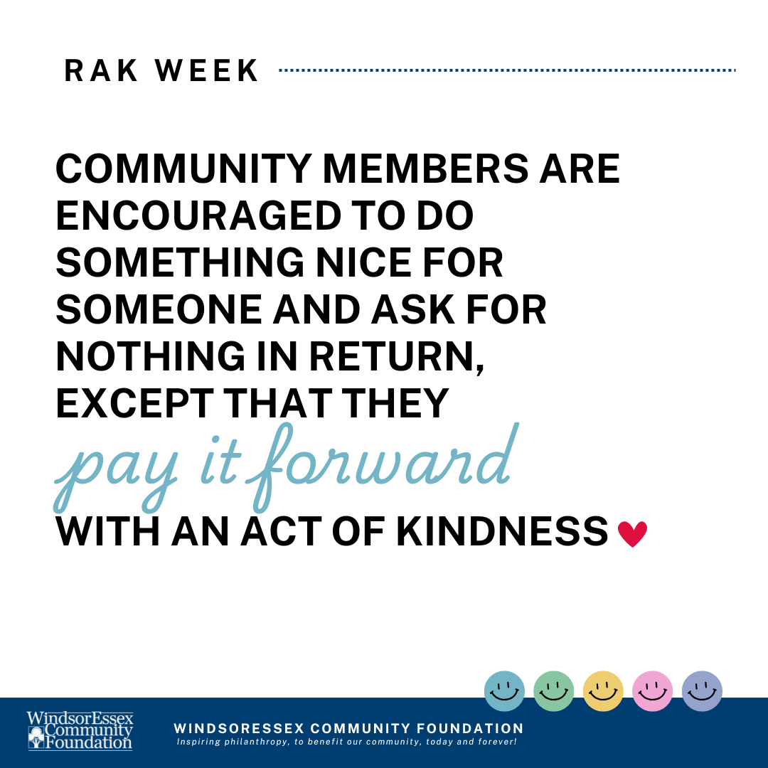 The WindsorEssex Community Foundation has been leading this special day in Windsor-Essex County for the past 16 years, bringing the community together by engaging residents across Windsor-Essex in small acts of kindness and generosity.